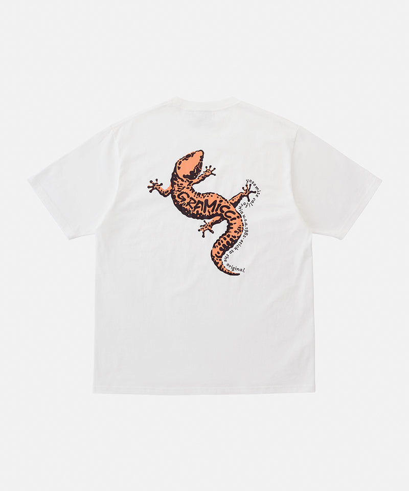 The Gramicci Gecko Tee celebrates nature's original wall-crawling specialists, geckos, who've been defying gravity and making impossible moves look effortless since way before anyone invented sticky rubber climbing shoes. The large back gecko graphic is a tribute to those tiny masters of grip strength who somehow manage to stick to any surface while looking completely relaxed about the whole situation, basically the climbing goals we're all secretly aspiring to. It's the kind of mid-weight tee that gets the gecko philosophy: stay cool under pressure, always have a good grip on the situation, and when things get sketchy, just remember that you're basically a small dinosaur with superpowers.