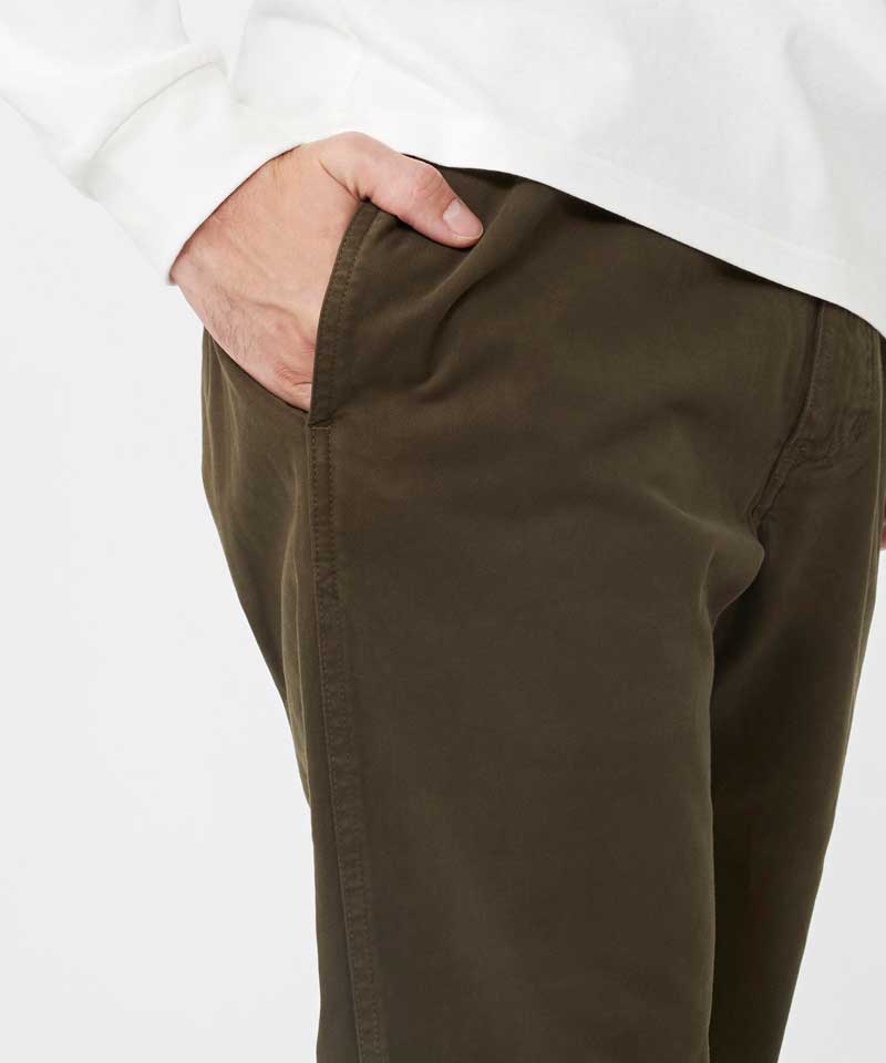 These pants are a modernized version of the fan-favorite G-Pants. The NN pants combine the trademark Gramicci details, like the gusseted crotch and the built-in belt, with a slightly sharper, slimmer shape compared to the Gramicci pants. We’d be remiss not to mention that they’re made out of organic stretch cotton twill—so while they fit a little snugger than our G-Pants, they still offer plenty of movement, whether climbing, hiking or just putting your feet up for a rest. The garment dye used on the NN pants gives added character to an already near-perfect creation.