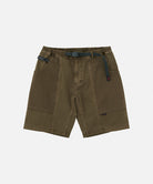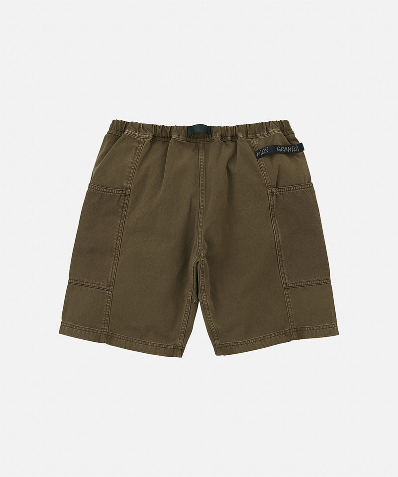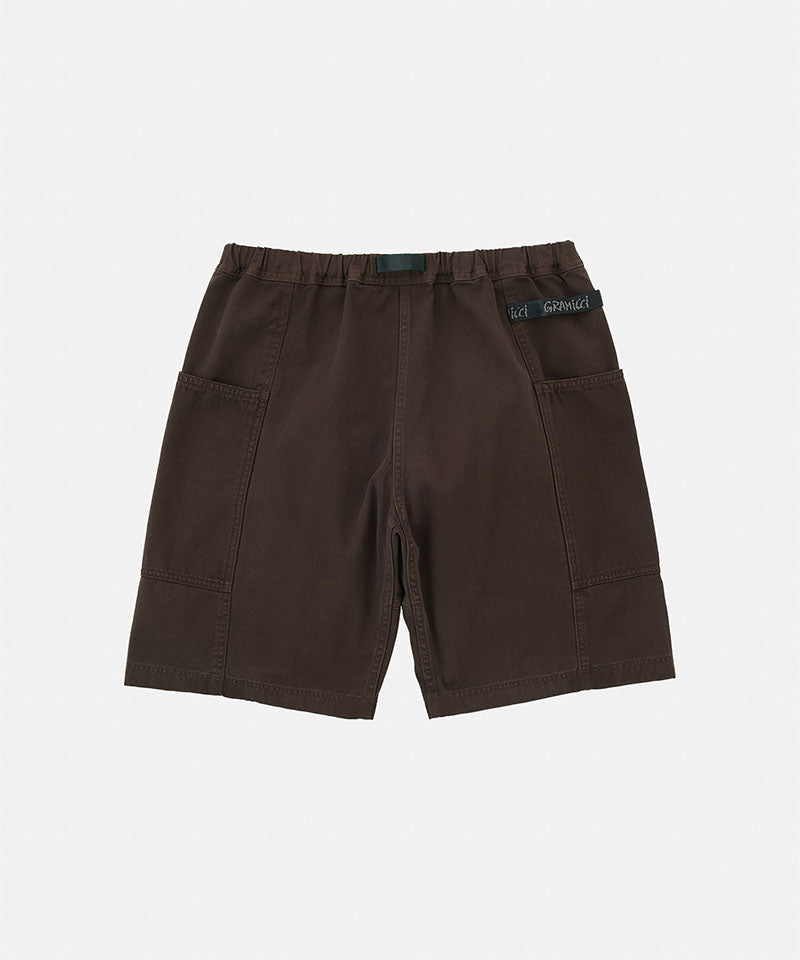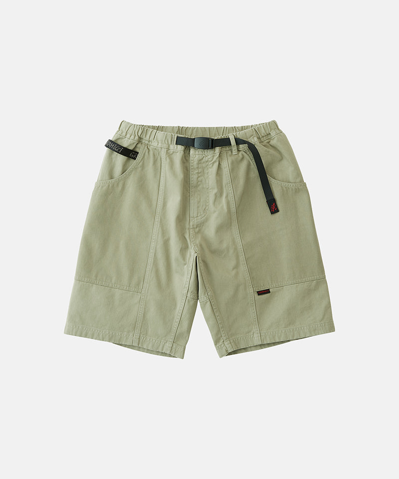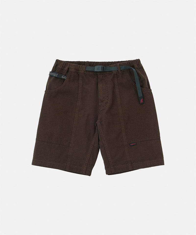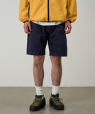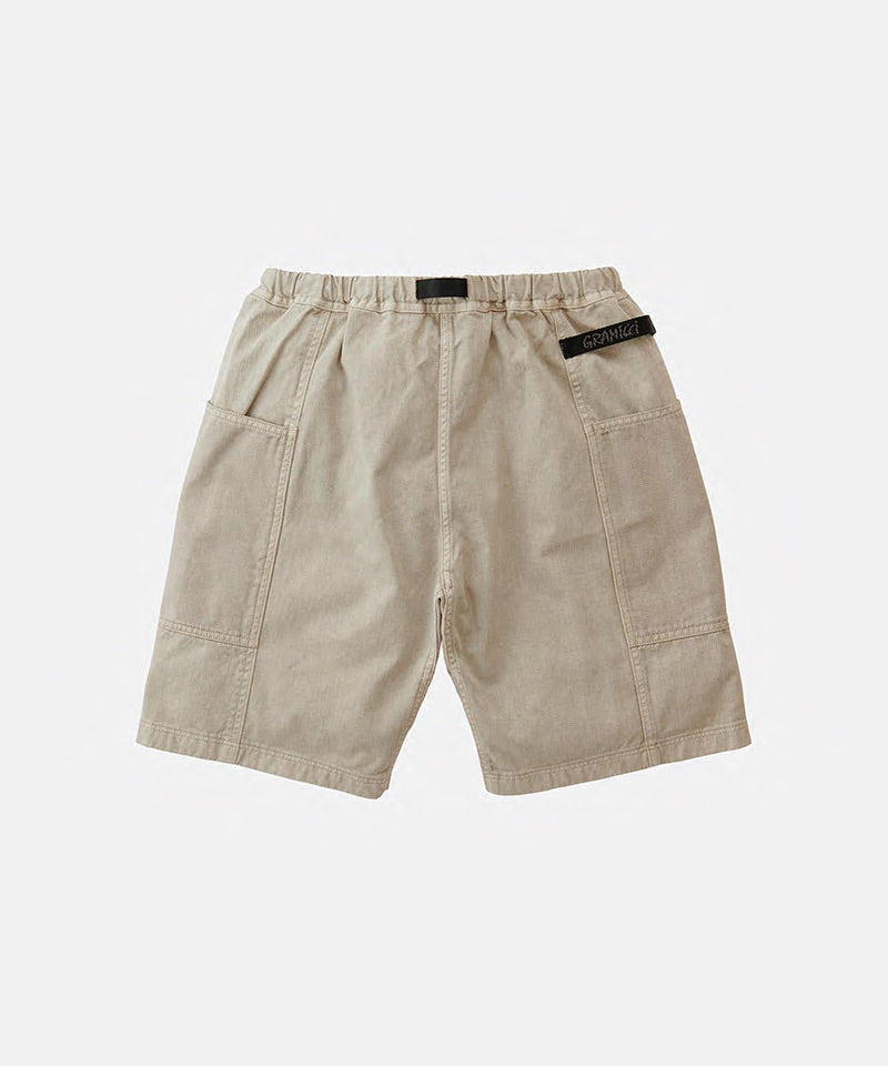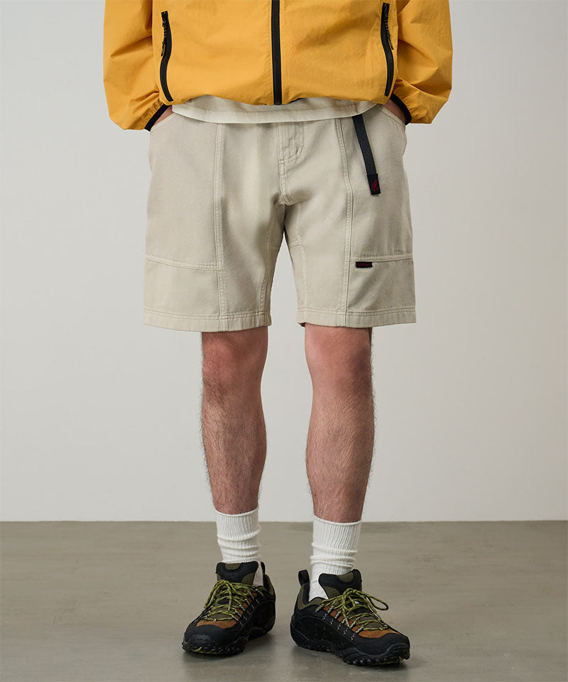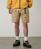 These shorts are able to hold gadgets to suit modern lifestyles, while maintaining the functionality during climbing that serves as the brand's roots. Highlighted by large pockets extending from the front to the back, the silhouette combines a comfortable looseness with a smart appearance. Tough canvas is used for these pockets, while the contrast between the two types of materials through garment dyeing is another notable feature. Also, the D-ring with the brand logo on the right side is useful in the outdoors and in the city, as it can hold keys and bottles. They are made of 100% organic cotton twill with high durability, tension, and stiffness that can even withstand strenuous movement and dyed to give character to their appearance.